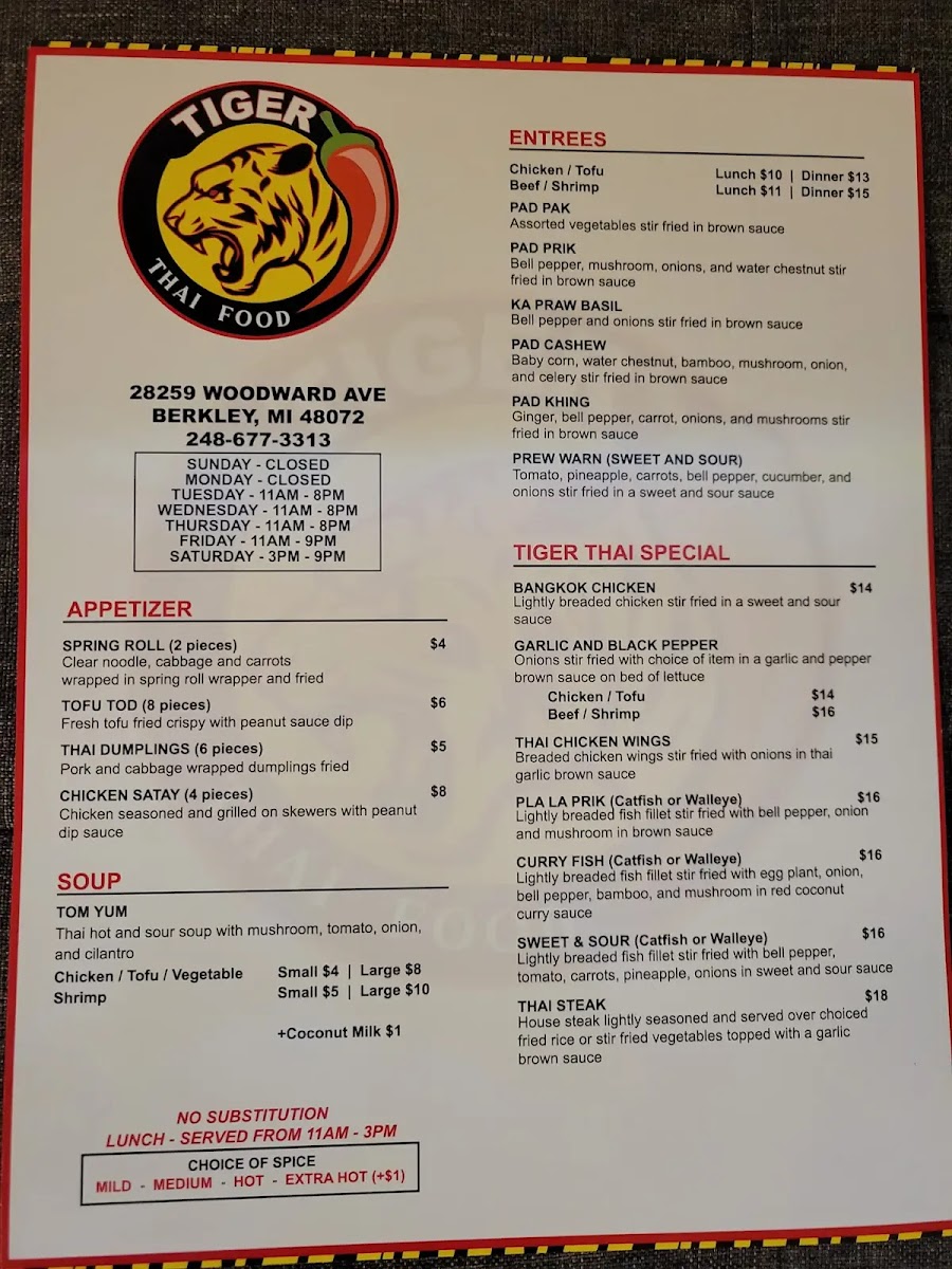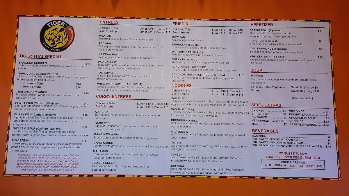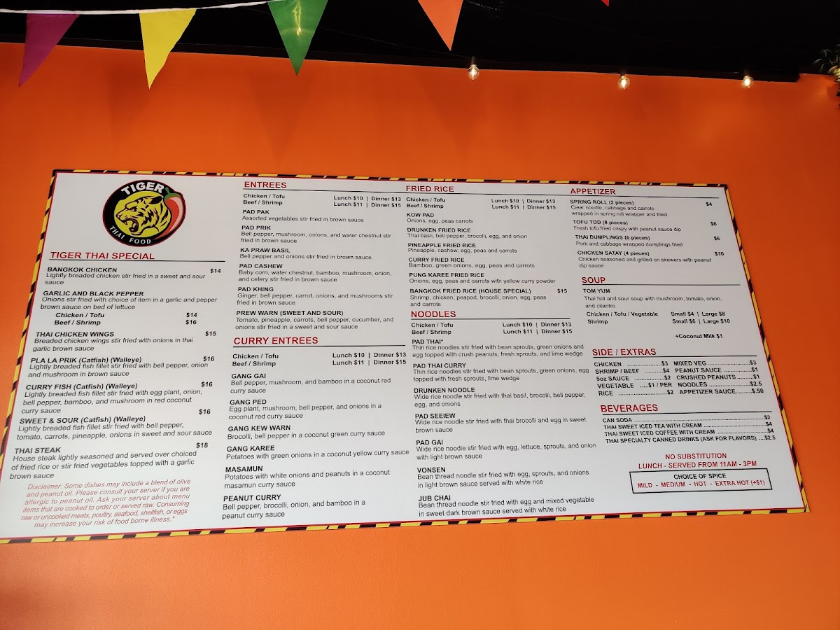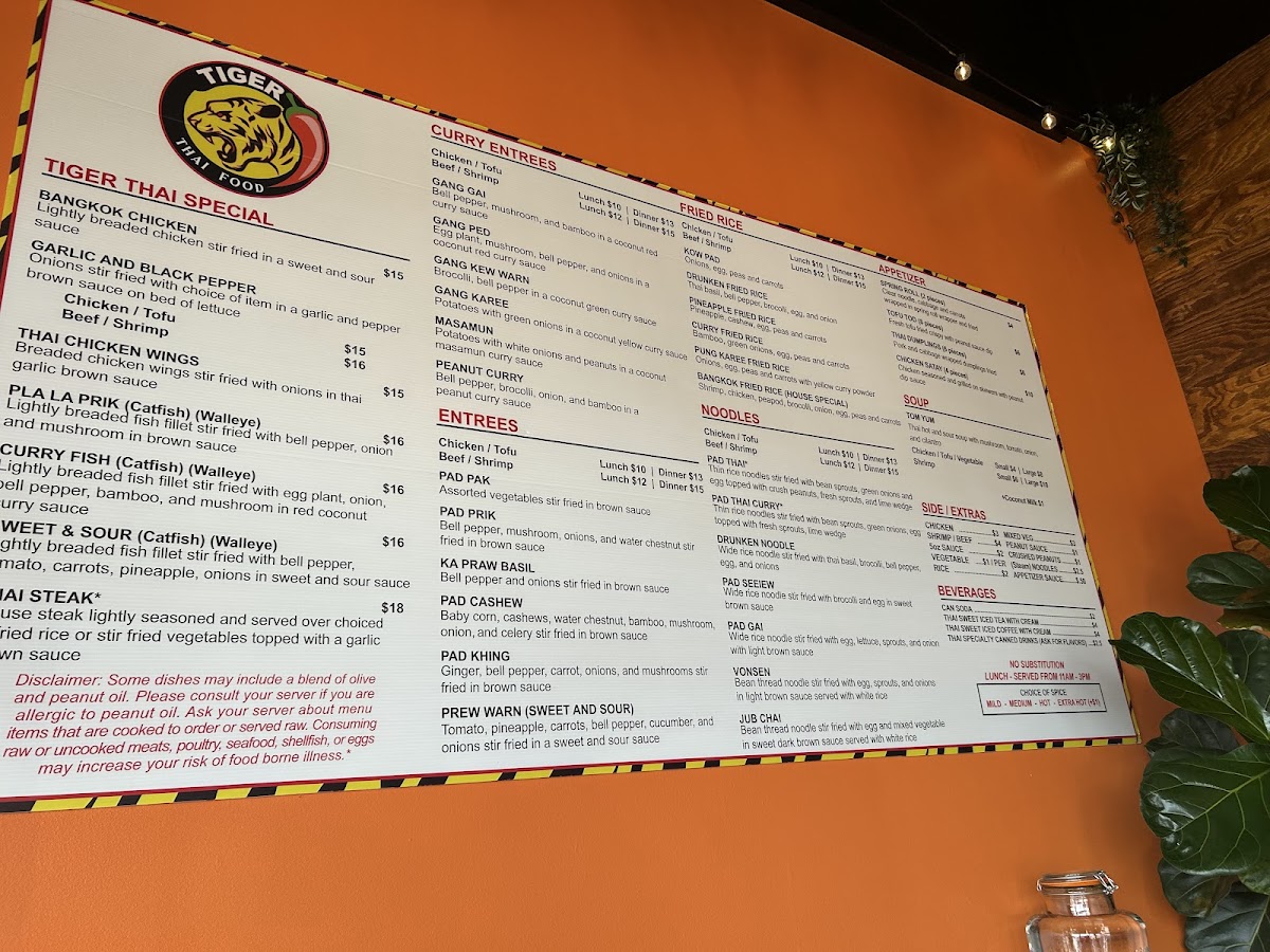 Tiger Thai Menu